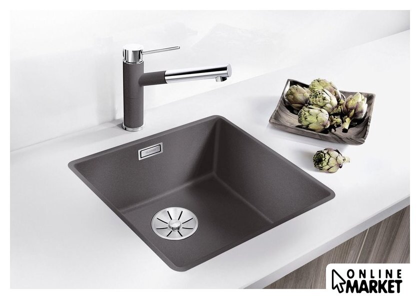 врезная вровень со столешницей, искусственный камень, размеры: 42.7x42.7 см, в шкаф 50 см