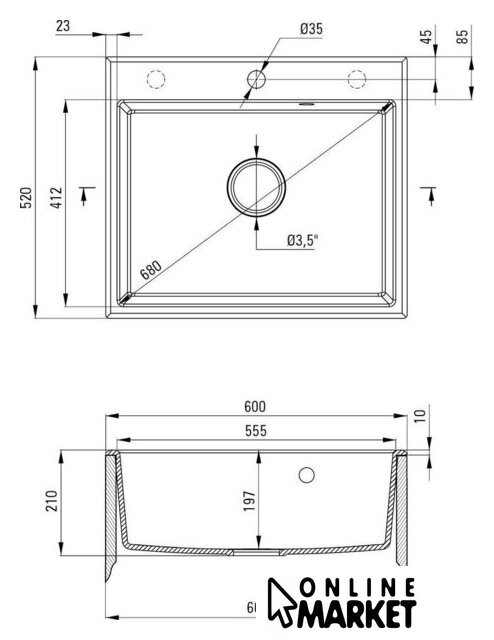 | Диаметр сливного отверстия | 3.5" |