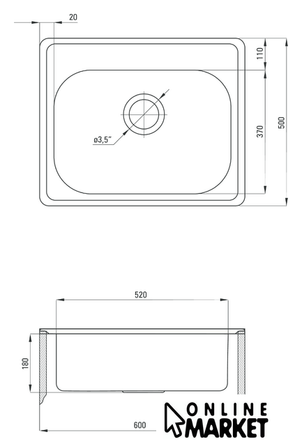 | Диаметр сливного отверстия | 3.5" |