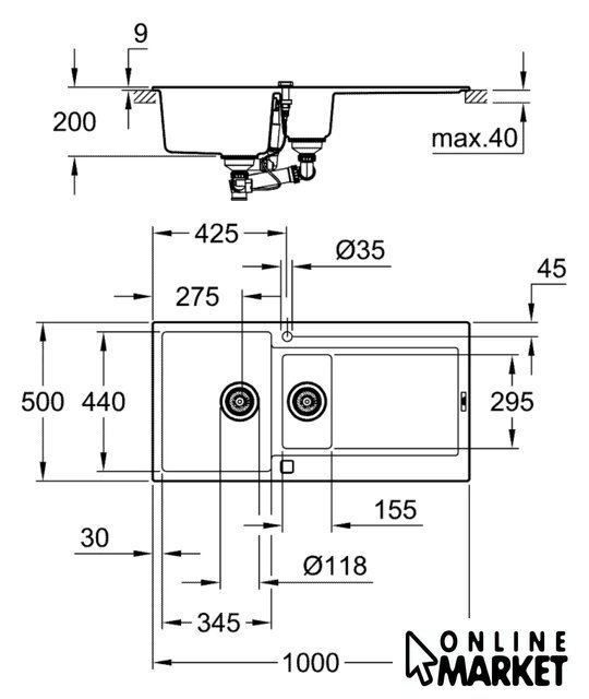 | Способ установки | врезная на столешницу |