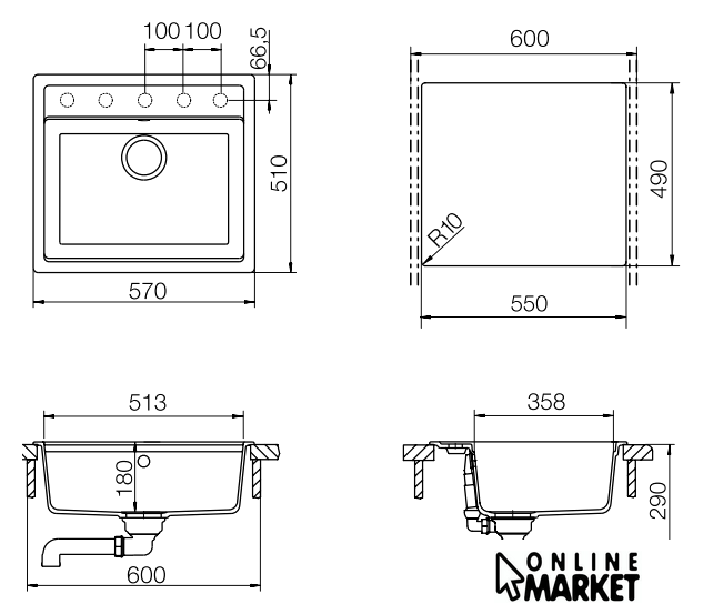 | Ширина мойки | 57 см |