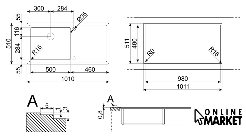 | Способ установки | врезная на столешницу, врезная вровень со столешницей |