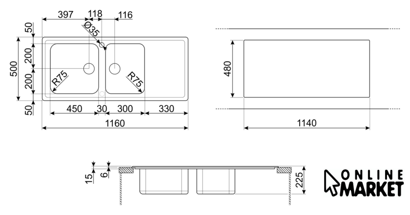| Ширина мойки | 116 см |