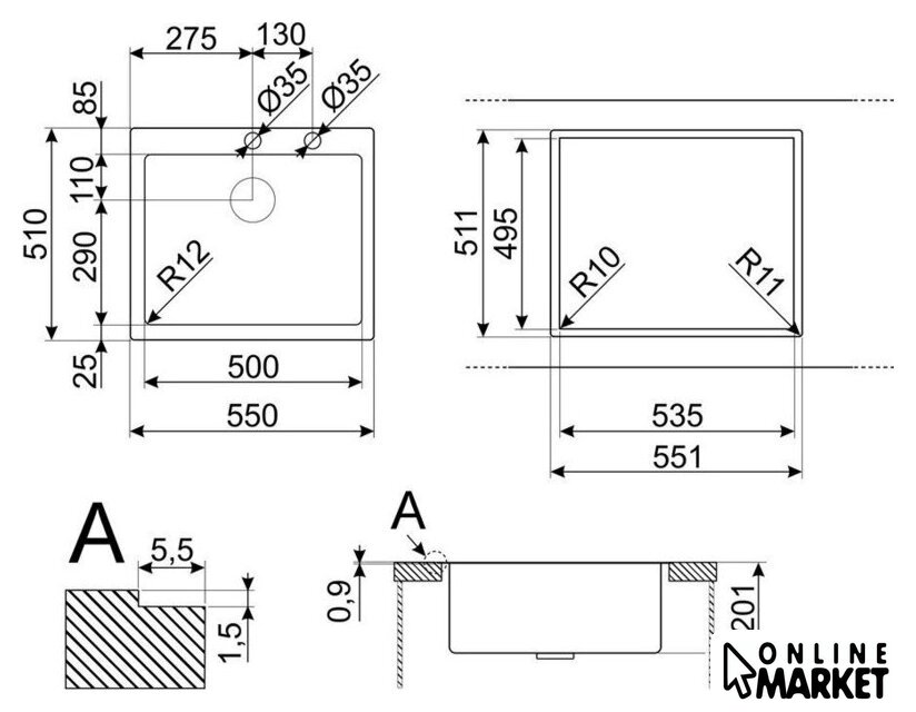 | Ширина мойки | 55 см |