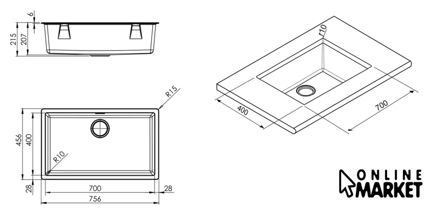 Ширина | 74.5 см (70 см - для монтажа под столешницу) |