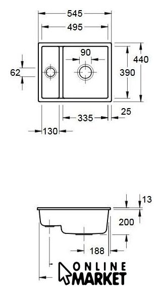 врезная под столешницу, керамика, размеры: 54.5x44 см, в шкаф 60 см