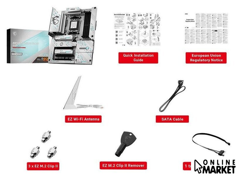 | Комплектация | - EZ Wi-Fi антенна - кабель SATA- 3 винта EZ M.2 Clip II- EZ M.2 Clip II экстрактор- 1-2 EZ кабель - документация |