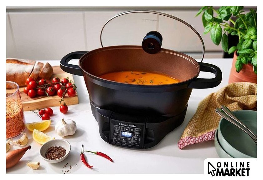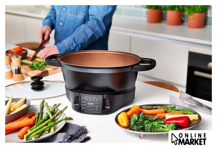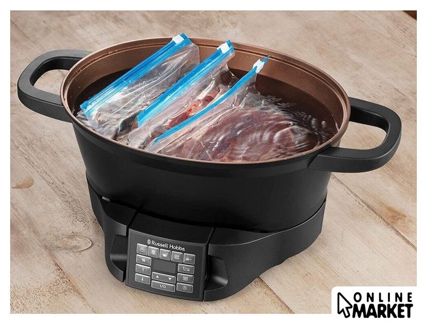 Перечень режимов работы | ФУНКЦИИ ГОТОВКИОбжарка: используйте мультиварку для пассеровки, обжарки и жарки во фритюре.Жарка: отлично подходит для жарки мяса с помощью входящей в комплект жарочной решетки.Готовка в вакууме: способ приготовления блюд в вакуумной упаковке на водяной бане при точно заданной температуре. Вакуумная упаковкасохраняет соки и изысканные вкусовые качества блюда, которые теряются при обычной готовке.Медленное приготовление: идеально подходит для запеканок, супов, тушеных блюд и сочетаний различных видов мяса с овощами.Пар: приготовление на пару овощей, рыбы и пр. с помощью входящей в комплект решетки для приготовления на пару.Рис: автоматическая идеальная варка риса.Кипячение: используйте для кипячения ингредиентов, приготовления супов, макаронных изделий и т. д.Поддержание температуры: позволяет сохранять приготовленную пищу теплой перед подачей на стол. |