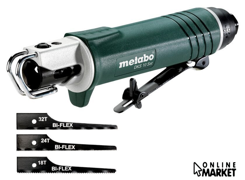 | Комплект поставки | - Вставной ниппель 1/4" EURO;- Вставной ниппель 1/4" ARO/Orion;- Вставной ниппель 1/4" ISO;- по 5 пильных полотен (18, 24 и 32 зуба);- Шестигранный ключ;- Пластиковый кофр;- Штуцер 10 мм и шланговый зажим согл. ISO 11148;- Флакон масла. |