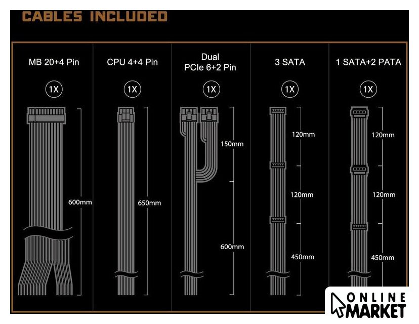 | Модульное подключение кабелей питания | нет |