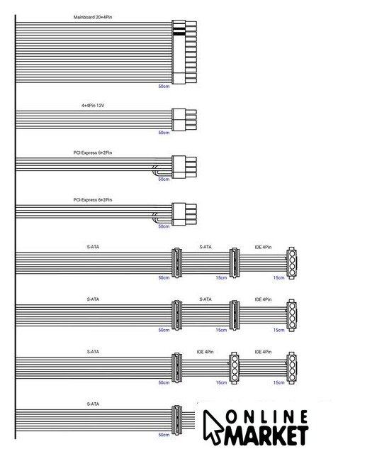 | Модульное подключение кабелей питания | нет |