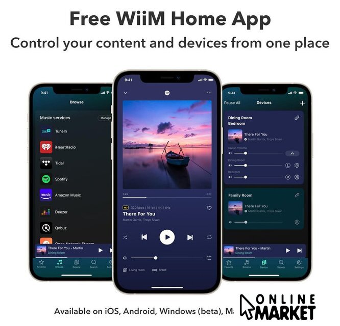 | Стриминговые сервисы | Amazon Music, Deezer, iHeartRadio, Napster, Pandora, Qobuz, SoundCloud, SoundMachine, Spotify, Tidal, TuneIn, vTuner |