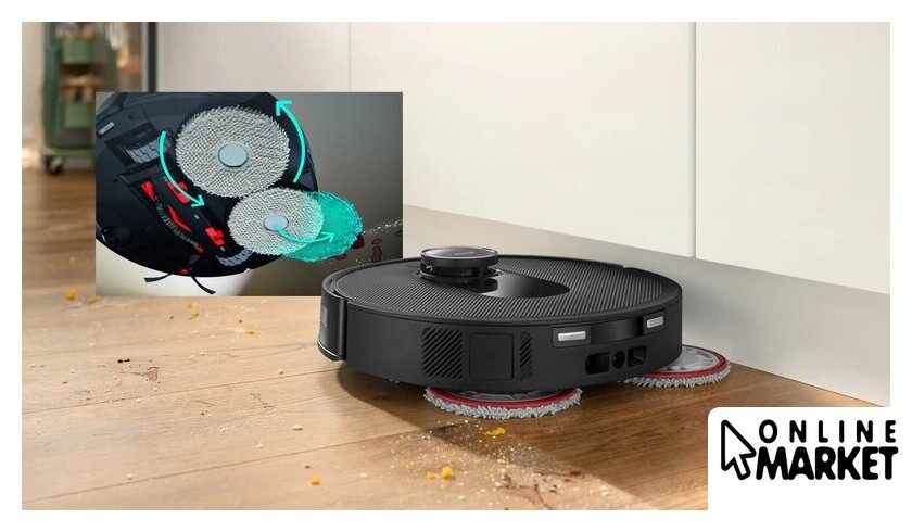 | Функциональные особенности базы | мойка швабры, сушка швабры, самоочистка пылесборника робота, заправка робота водой |
