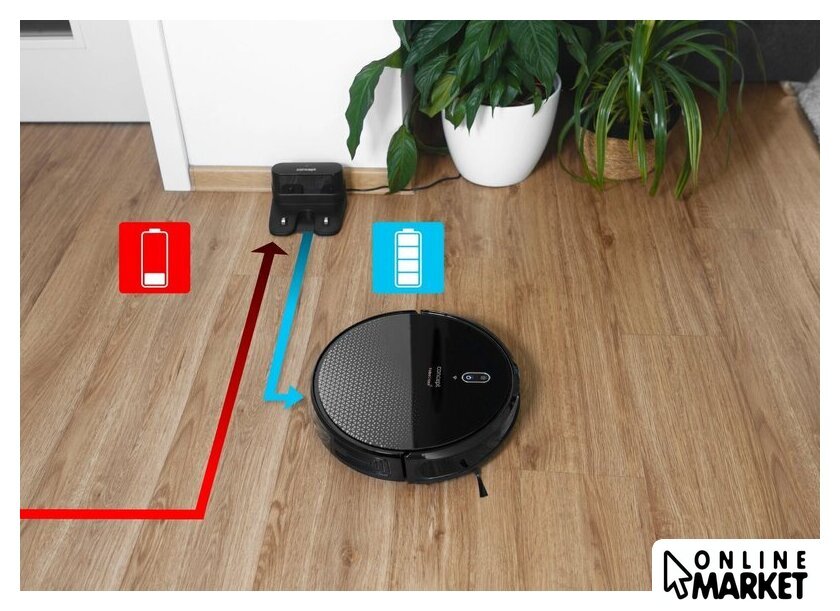 | Комплектация | зарядная станция, пульт дистанционного управления, щеточка для чистки, 2 ткани для мытья полов, 3 пенных фильтра, инструкция |