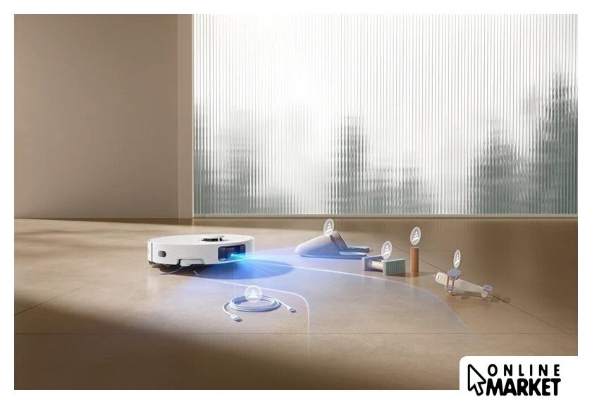 | Комплектация | автоочищающаяся база, основная щетка с защитой, боковая щетка, сменные мешки для пыли, насадка для влажной уборки, крепление для мопа, удлинительная пластина для заезда на базу, руководство по быстрому запуску |