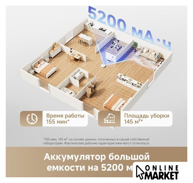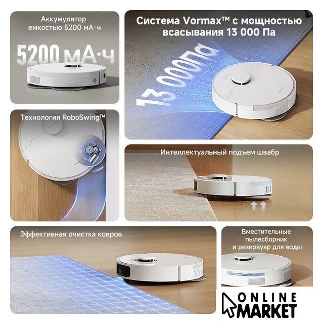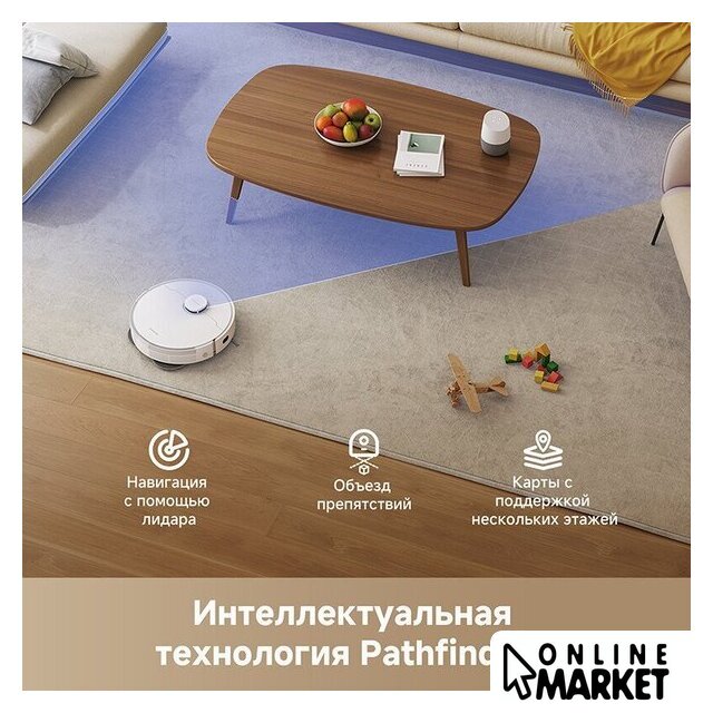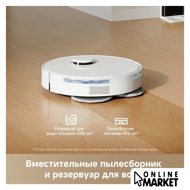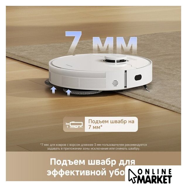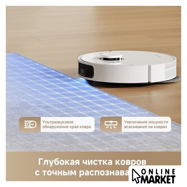 | Функциональные особенности пылесоса | локальная уборка, выбор траектории движения, уборка по расписанию, виртуальная стена в приложении, автовозврат на базу, определение ковров, выдвигающаяся насадка для влажной уборки, подъем тряпки на ковре |