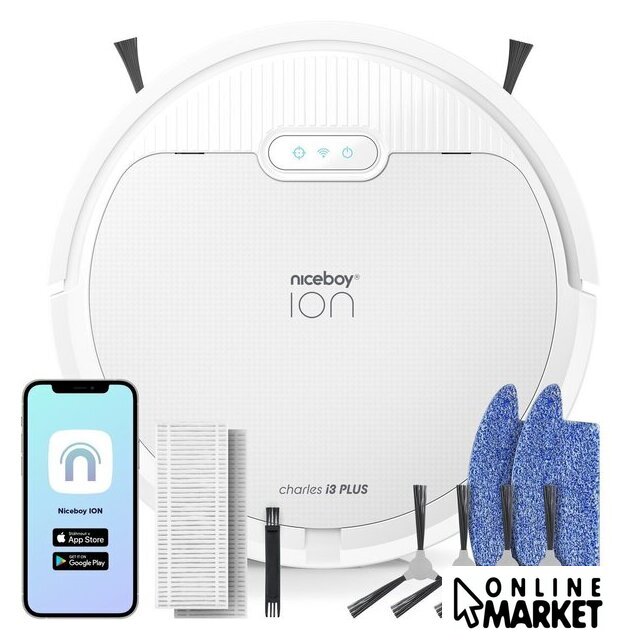 | Комплектация | зарядная база, 4 боковые щетки, адаптер питания, инструкция по эксплуатации, HEPA фильтр, двойной контейнер, салфетка для влажной уборки с креплениями, щетка для очистки |