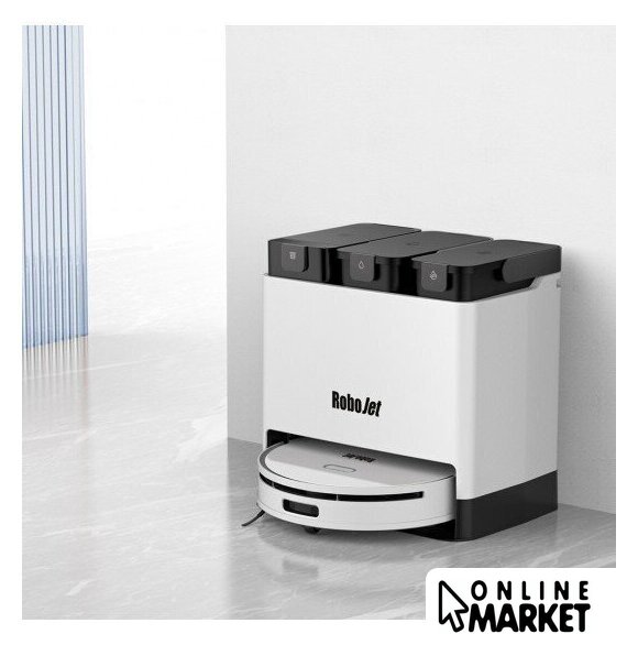 | Функциональные особенности базы | мойка швабры, сушка швабры, самоочистка пылесборника робота, заправка робота водой |