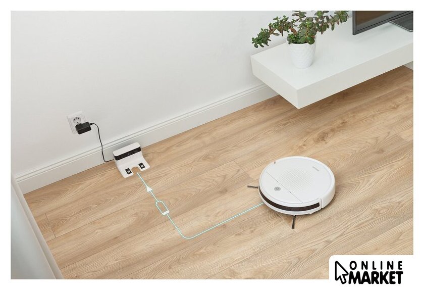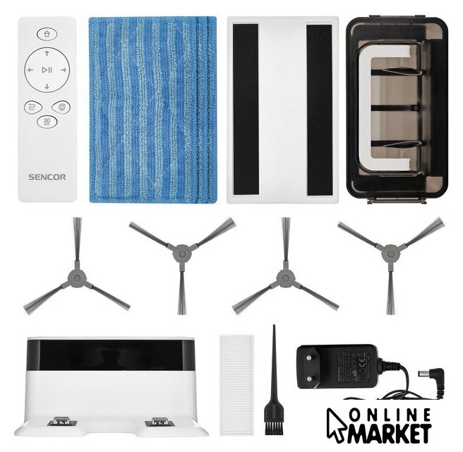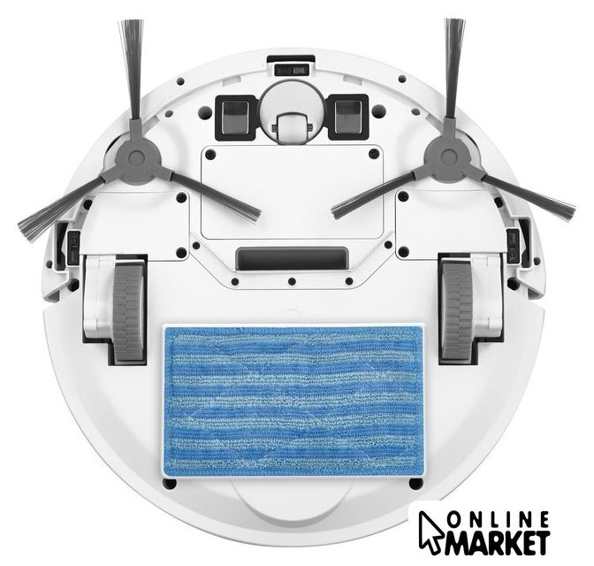 | Комплектация | две боковые щетки и фильтры, насадка для влажной уборки, 3 текстильные мопы, пульт дистанционного управления, 2 батарейки AAA, 2 запасные боковые щетки, адаптер питания, запасной HEPA-фильтр, щетка для чистки, зарядная станция |