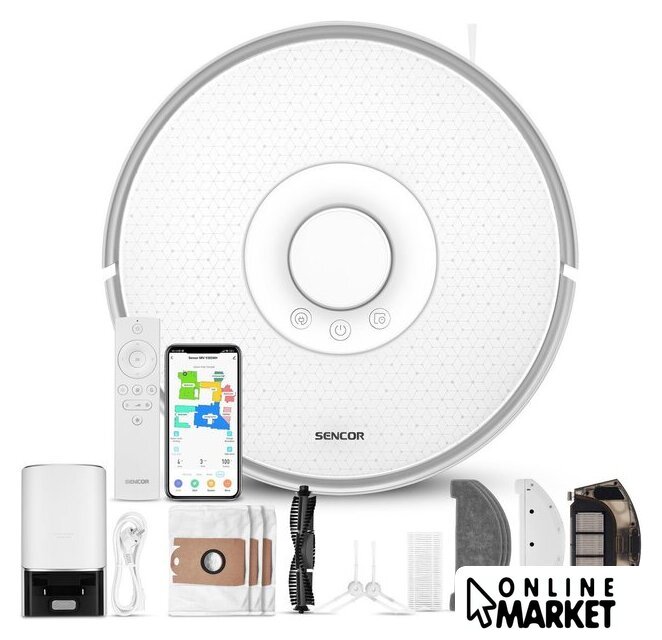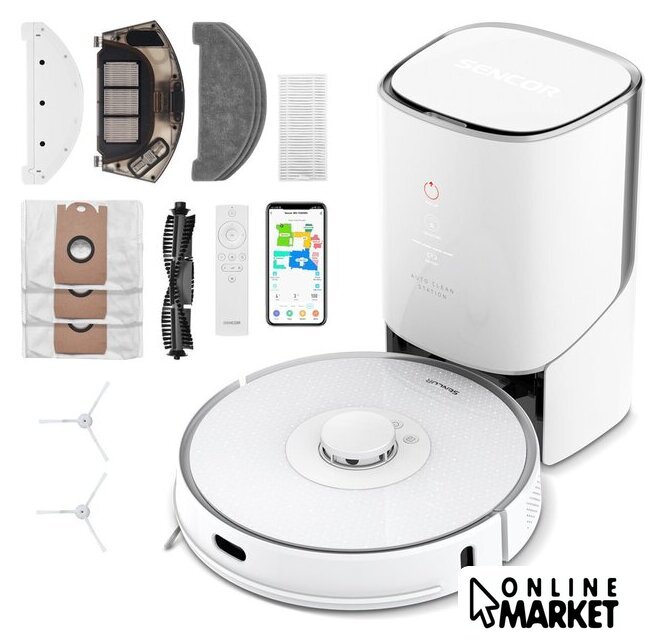 | Комплектация | боковые щетки и фильтры, зарядная станция с контейнером для пыли и мешком, насадка для влажной уборки, текстильные мопы, пульт, 2 батарейки AAA, запасная боковая щетка, адаптер питания, запасной HEPA-фильтр, запасной поролоновый фильтр, щетка для очистки, 2 запасных мешка для пыли |