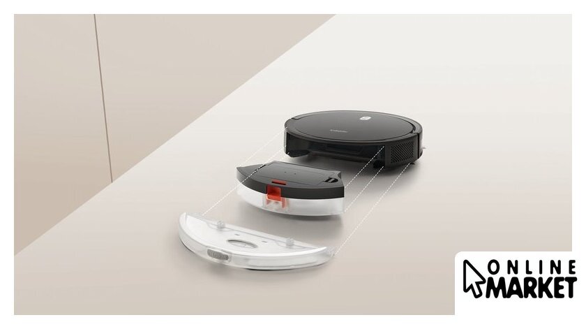 Комплектация | контейнер для влажной уборки, зарядная станция, адаптер питания, щеточка для очистки, документация, боковая щетка (2 шт.), ткань для влажной уборки, контейнер для сухой уборки |