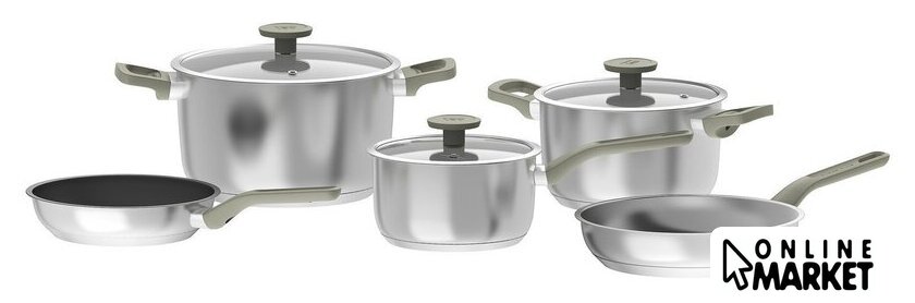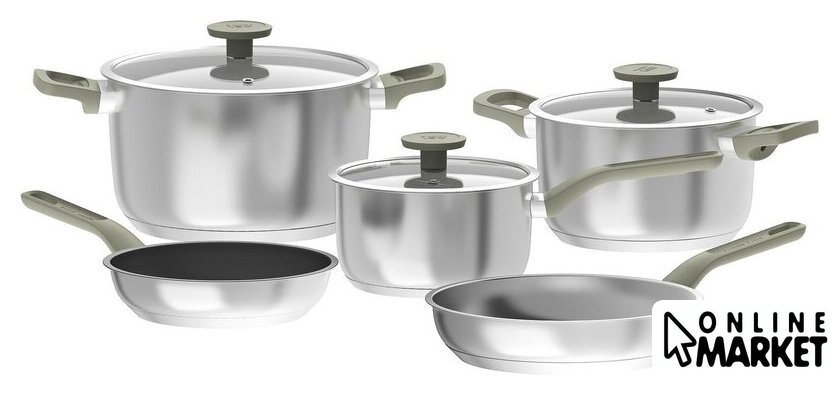 | Состав набора | сковорода (2 шт.); кастрюля (2 шт.); ковш; крышка (3 шт.) |