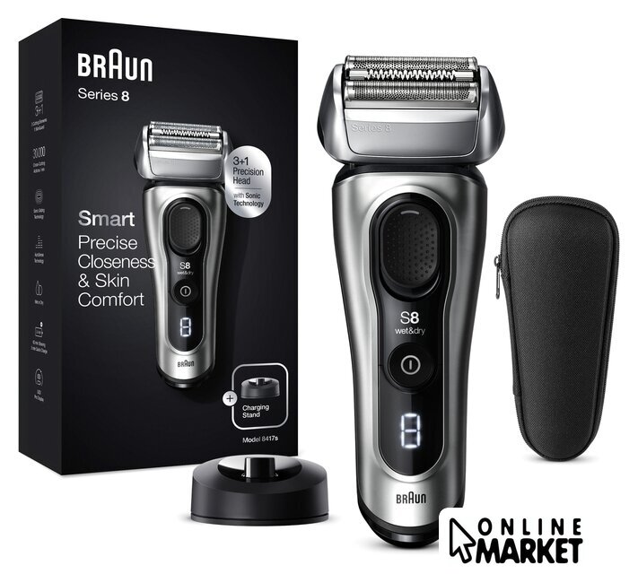 | Комплект поставки | Бритва Series 8 Твердый тканевый футляр для электробритвы Braun Series 8 Зарядная станция Кабель питания SmartPlug |