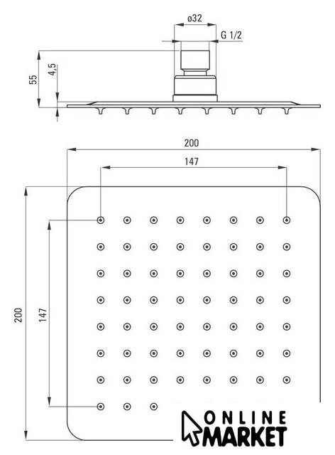 | Диаметр (ширина) верхнего душа | 200 мм |