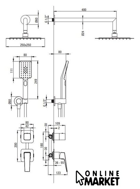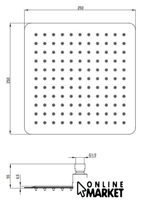 | Диаметр (ширина) верхнего душа | 250 мм |