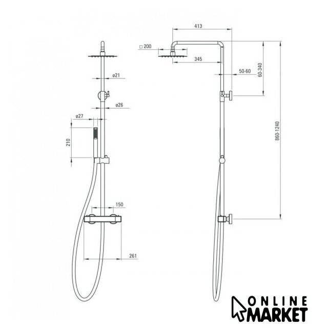 | Диаметр (ширина) ручного душа | 27 мм |