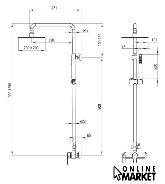 | Диаметр (ширина) верхнего душа | 200 мм |
