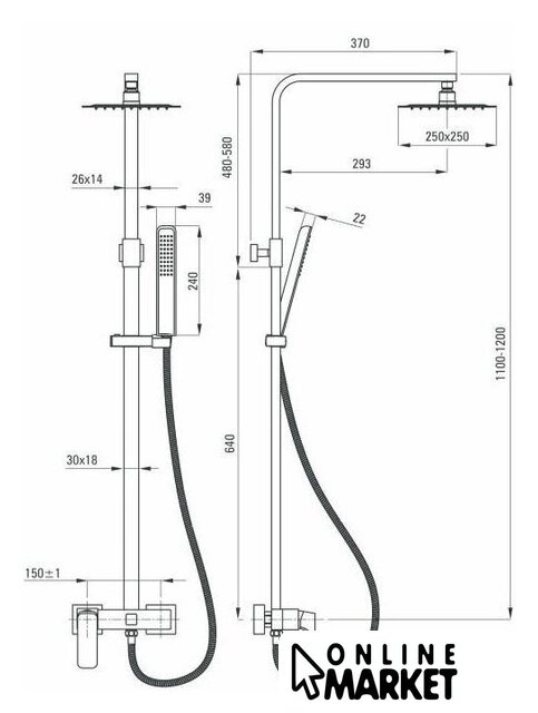 | Комплектация | верхний душ, штанга, ручной душ (лейка), держатель лейки, шланг, смеситель |