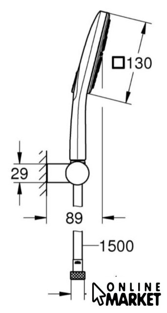 | Диаметр (ширина) ручного душа | 150 мм |