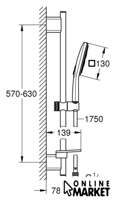 | Диаметр (ширина) ручного душа | 130 мм |