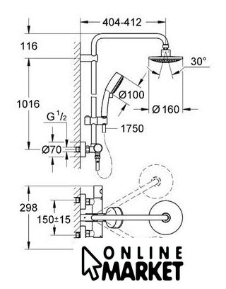 | Диаметр (ширина) верхнего душа | 160 мм |