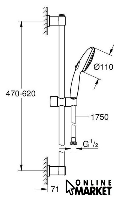 | Комплектация | штанга, ручной душ (лейка), держатель лейки, шланг |