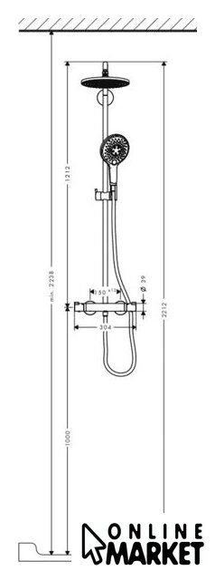 | Комплектация | верхний душ, штанга, ручной душ (лейка), держатель лейки, шланг, смеситель |