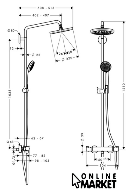 | Диаметр (ширина) верхнего душа | 1 мм |