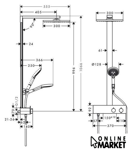 | Диаметр (ширина) верхнего душа | 300 мм |