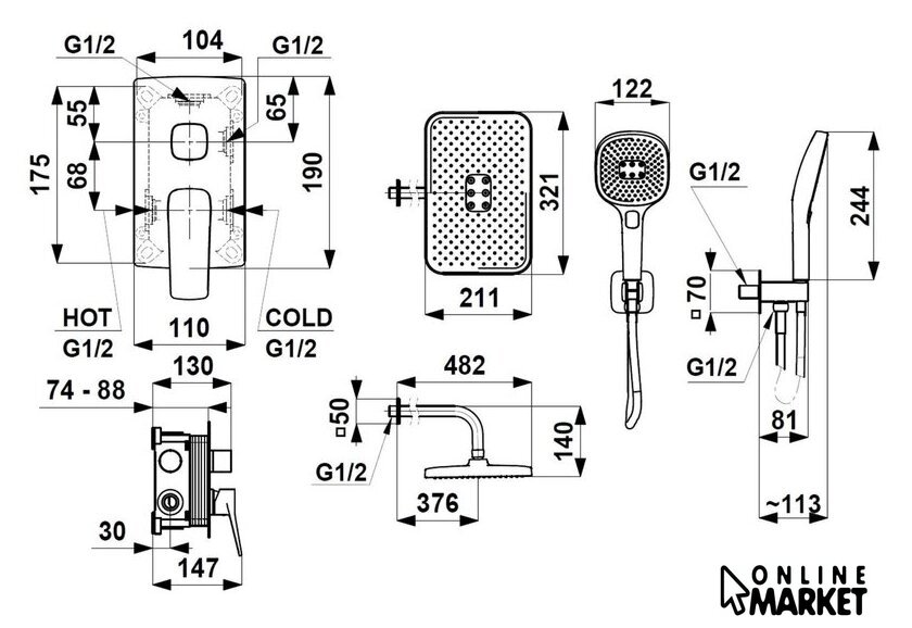 | Тип | душевая система (с верхним душем) |