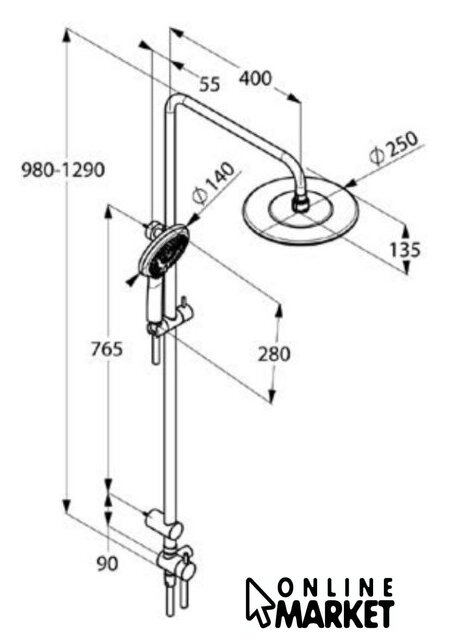 | Диаметр (ширина) верхнего душа | 250 мм |