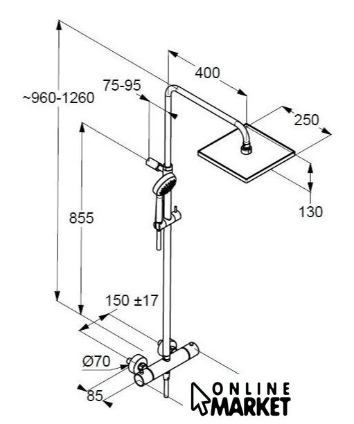 | Диаметр (ширина) верхнего душа | 250 мм |