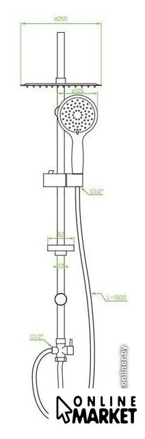 | Диаметр (ширина) верхнего душа | 250 мм |