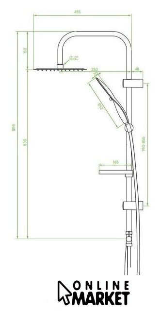 | Вылет верхнего душа | 350 мм |