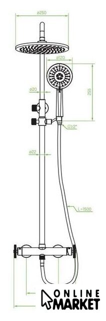 | Диаметр (ширина) верхнего душа | 250 мм |