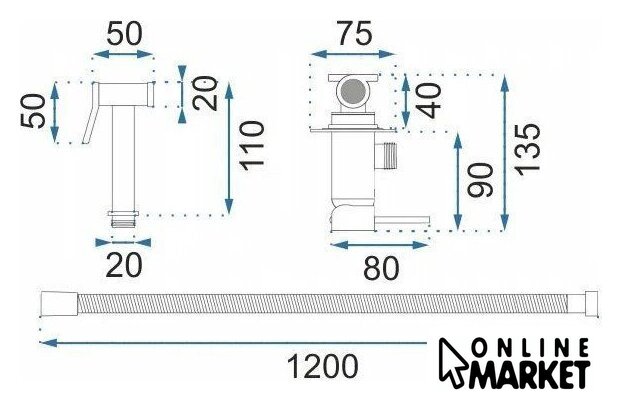 | Комплектация | держатель лейки, шланг, смеситель, гигиенический душ (лейка) |