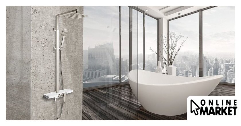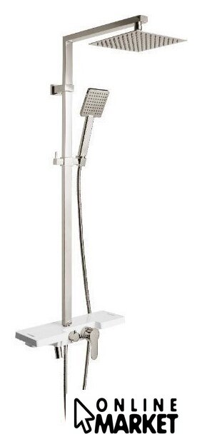 | Комплектация | верхний душ, штанга, ручной душ (лейка), держатель лейки, шланг, смеситель, излив для ванны, полочка |