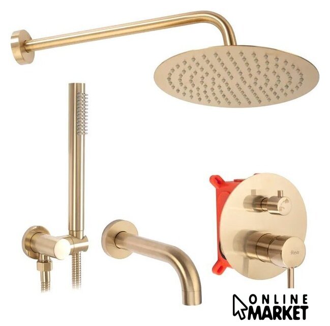 | Комплектация | верхний душ, ручной душ (лейка), держатель лейки, шланг, смеситель, излив для ванны |