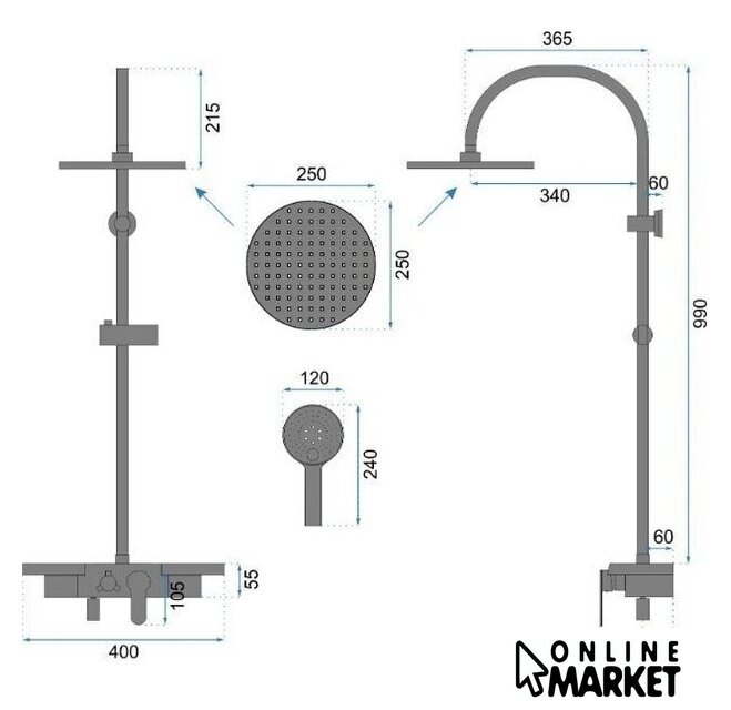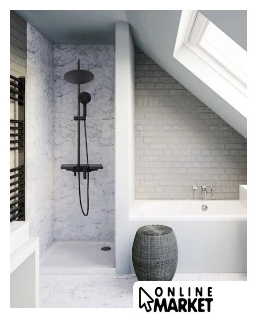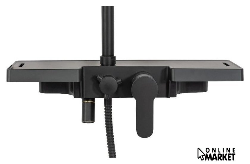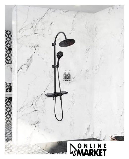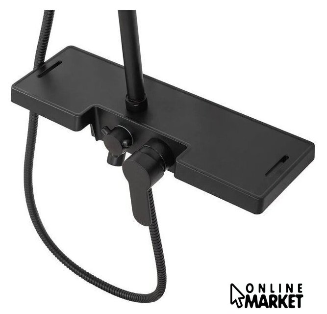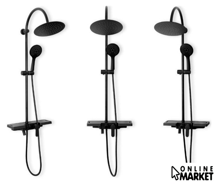 | Комплектация | верхний душ, штанга, ручной душ (лейка), держатель лейки, шланг, смеситель, излив для ванны, полочка |
