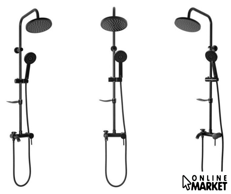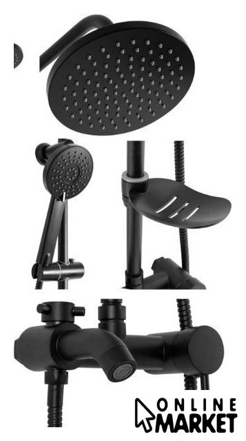 | Комплектация | верхний душ, штанга, ручной душ (лейка), держатель лейки, шланг, смеситель, излив для ванны, мыльница или держатель для мыла |
